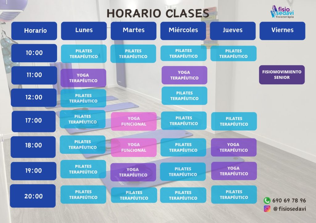 En Fisiosedaví, ofrecemos clases de Pilates adaptadas a todos los niveles: desde principiantes hasta avanzados. Nuestro enfoque es siempre terapéutico y personalizado, para que puedas alcanzar tus objetivos de manera segura y efectiva. Las clases están diseñadas para ayudarte a mejorar tu postura, fortalecer tu core y flexibilizar tu cuerpo, todo mientras disfrutas de una práctica tranquila y controlada.
